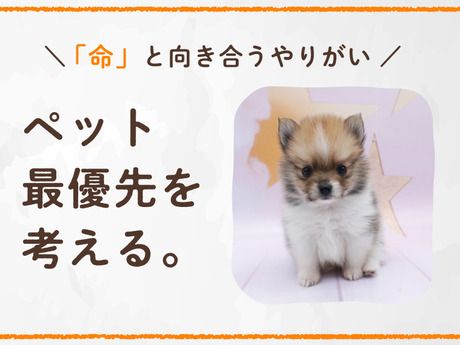 仕事内容 ここがポイント☆ ・約9割が業界未経験スタート ・年齢・性別関係なくキャリアアップ ・ペット業界のリーディングカンパニー ・髪色自由で自分らしく働ける ――――――――――――――――――――― お任せする仕事内容 ――――――――――――――――――――― ペットとお客様の「出会いの架け橋」となる仕事です。 (1) 接客・販売 お客様への声がけ、ペットの紹介 契約手続き、保険・保障サービスの説明 ペット用品・フードの提案 (2) ペットの健康管理 毎日の検温・体重測定・体調チェック 給餌、耳掃除、爪切り等のお世話 体調変化への早期対応 (3) 店舗運営 店内清掃、温度・湿度管理 SNS投稿、プロモーション活動 ■未経験でも安心の理由 実は当社のスタッフの約9割が業界未経験からのスタートです。 <充実のサポート体制> ・入社後約1週間の座学研修 ・犬種・猫種の知識や接客の基本、契約業務の流れを学習 ・店舗でのOJT研修でしっかりフォロー ・先輩スタッフがしっかりサポート ・本社スタッフのフォロー体制も万全 販売・接客・営業など異業種からの転職者も多数活躍しています。 共通するのは「ペットが好き!」という想いです! しっかりサポートするのでご安心ください。 ■求める人物像 ★こんな方に向いています★ ・販売・営業経験をお持ちの方 ・ペットが好きで、人の話を聞くのが得意な方 ・誰かの喜ぶ顔を見るのが好きな方 ・コツコツ学びながら成長したい方 <どんなお客様と関わるの?> 「ペットが好き」「いつかは飼いたいと思っている」お客様がほとんど! お客様のご希望やご要望に沿って素敵なペットライフの提案をお願いいたします◎ <どんなキャリアが描ける?> 店長やマネージャーなど様々なキャリアが描けます。 ひとりひとりの頑張りを評価する社風で、 意欲次第でどんどんキャリアアップ出来ます。 女性管理職も多数活躍中です。