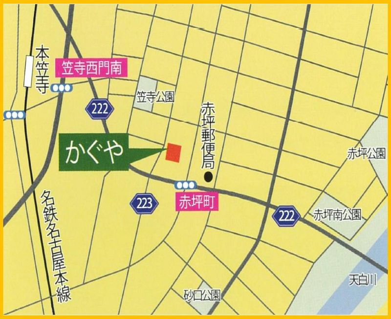 交通・アクセス 名古屋地下鉄「新瑞橋」市バス「赤坪町」から徒歩5分、名古屋本線「本笠寺」駅から徒歩15分
