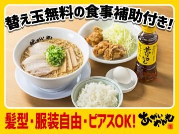 待遇・福利厚生 【福利厚生】 ◆髪型・髪色自由、ピアスOK ◆食事補助(替え玉無料!) ◆正社員登用 ◆車・バイク通勤OK