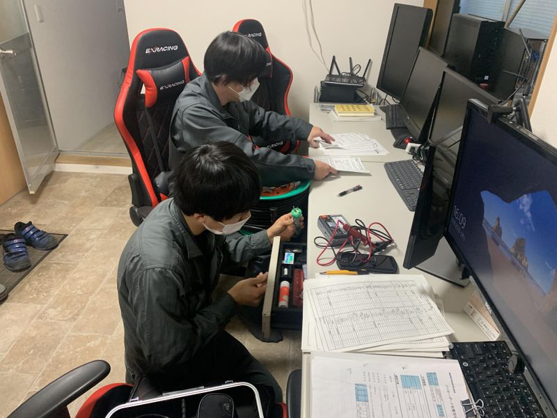 職場環境 代表も含め7名と少数精鋭の会社です。 作業は基本的に2~3名のチーム制。 協力会社と連携しながら作業を 進める場合もあります。 常に先輩が近くいる環境なので、 困ったこと、分からないことは 遠慮せずに何でも聞いてください!