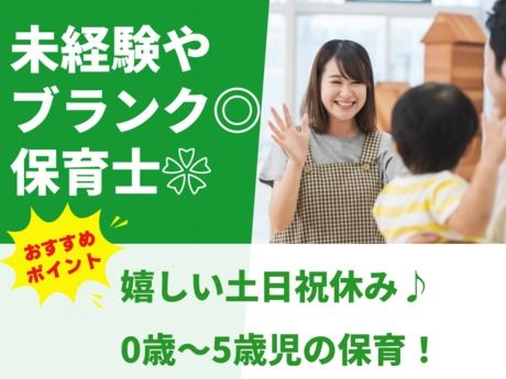 <★保育士資格者必須!>未経験・ブランクOK!土日祝休みで働きやすさ抜群♪