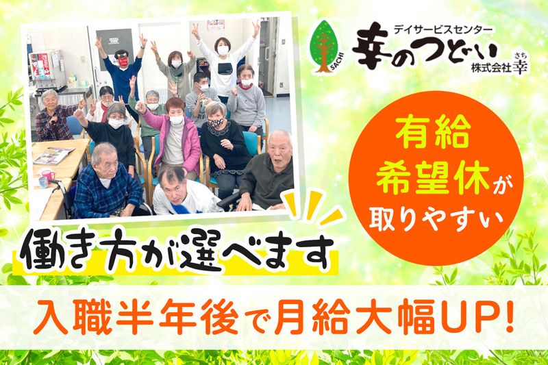 【仕事内容】 要介護のご高齢者を対象としたデイサービス(通所介護)を提供する当施設にて介護スタッフを募集。 現在よりも休日数を増やし、より有給休暇を取りやすくするなど、働きやすさをさらに進化させるための増員になります。 ▶未来(5年後)の管理職候補者も大募集! 【PRポイント】 ・年間休日120日!(※ 2026年4月1日から) ・昇給や賞与、各種手当が充実! ・夜勤は一切ナシ!日勤専属のお仕事! ・充実の研修制度や懇親会あり 安心して働けます ■具体的な仕事内容 デイサービスにおける介護(看護、保育)業務全般。利用者様に最適なサービスを提供していただきます。利用者様やご家族から「ありがとう」と言って貰えるやりがいのある仕事です。 ・利用者様の介護や介助 ・入浴介助、レクリエーション ・運動のサポート、事務業務 ・送迎業務(軽、5人~10人乗り)など ・営業(顧客獲得のための活動) ・講習会等の受講 ・障がい(児童)福祉サービス業務全般 【ご利用者様】 ・高齢の方 ・障がいをお持ちの方 【事務の負担軽減に取り組んでます】 新しいスタイルで進化中! ITツールを活用し、業務の手続きをスムーズかつ効率的に! ======================= 長く働ける理由が、ここにある。 ======================= 年間休日120日!(※2026年4月1日から)働きやすさを見直し、休日制度をさらに充実させました。 しっかり休める環境が、仕事の質とモチベーションを高めます。 オンもオフも大切にできる、安心して長く働ける職場です。 ================== 未経験から、安心の一歩を。 ================== 充実した研修制度があるため、デイサービス未経験の方も安心してスタート可能。 一人ひとりの成長に寄り添い、基礎から丁寧にサポートします。 パート勤務・時短勤務もOK。無理なく、あなたらしく働ける職場です。 【求人ID-SHK】