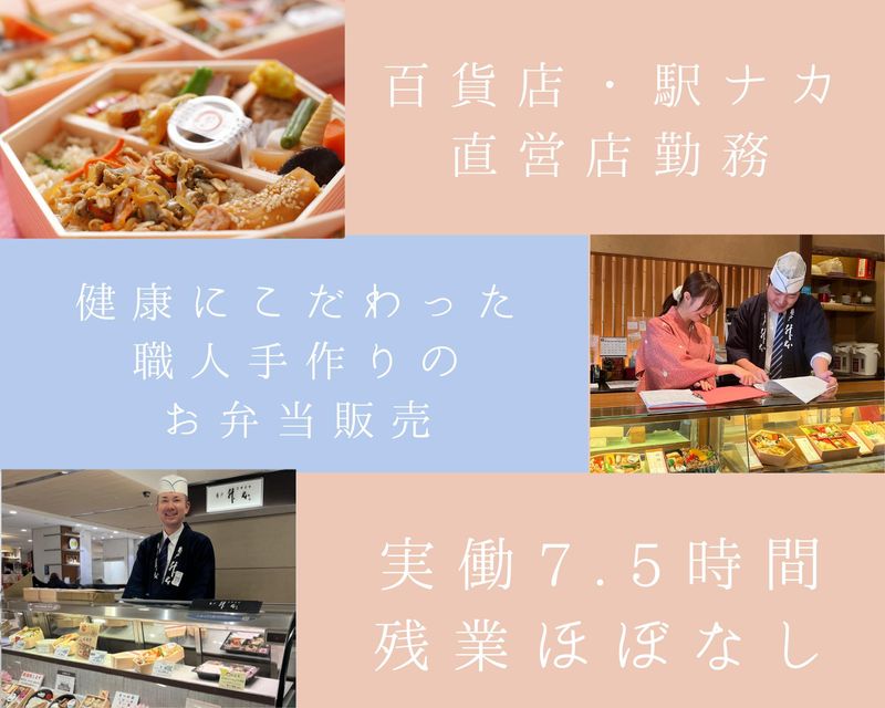 仕事内容 伊勢丹新宿店にてお弁当の販売をお任せするメンバーを募集します! 伊勢丹新宿本店には3名の社員が在籍。 店長を中心に、みんなで協力しながら日々の業務を行います。 販売業務がメインのお仕事☆慣れるまで店長や先輩社員がそばにいるので、未経験でもすぐに慣れることができます! ◎職場では主に若手スタッフ、ベテランスタッフが活躍中。 明るく丁寧な対応を心がけてくださる方なら未経験でも歓迎いたします◎ キャリアチェンジを考え中の第二新卒の方も大歓迎! 接客や販売のイロハをいちから丁寧に研修、サポートします。 【具体的なお仕事内容】 ✅お弁当の販売 お客様に合わせた接客を行います。常連のお客様も多いのですぐに顔見知りになれることも◎ ✅お弁当の陳列 開店前とお昼過ぎに、お弁当が入荷します。お弁当の配達をするのも弊社の社員です。 届いたお弁当の検品をしてから店頭に陳列します。 ✅開店・閉店作業 レジの準備やお弁当の準備、日報の作成などを行います。 ✅その他 お弁当の受発注や季節に合わせたショーケースの飾りつけもお願いする場合があります。 ※食品の包装はありません まずは販売業務に慣れていただいてから少しずつ上記の業務をお任せします。 臨機応変な接客スキルに加え、店舗運営の基本を働きながら知る事ができます。将来は店長を目指すことも大歓迎です! 何かわからないことがあっても、すぐ近くにいる社員に気軽に聞ける環境なので初めての方もご安心ください✨ \\ 1 日の流れ(一例) // 09:00~ ▶出勤 09:00~09:50▶開店準備 9:50~12:00 ▶販売 12:00~14:00▶お昼休憩 13:30~14:00▶お弁当の検品、陳列 14:00~18:30▶販売 お昼休憩では百貨店や駅ナカビルの休憩施設を利用できます。 *・・*・・*:.。.*.。.:*・☆・・*:.。.*.。.:* ✨スタッフが入社を決めた理由✨ *・・*・・*:.。.*.。.:*・☆・・*:.。.*.。.:* 保存料を使用しない、職人手作りの体に優しいお弁当を作っています♪ 割烹弁当からマクロビオティックのお弁当まで全て美味しく、健康に良い◎ そういった商品を取り扱っていることが「ここで働きたい」想いに繋がっていて、自分の誇りになっています♪ *・・*・・*:.。.*.。.:*・☆・・*:.。.*.。.:* ✨スタッフから見た当社で働く魅力✨ *・・*・・*:.。.*.。.:*・☆・・*:.。.*.。.:* ✅常連のお客様が多く、たくさんの人に会社の商品が愛されていることを実感できる お客様が自分のファンになってくださり、「昨日は○○さんがいなかったから寄らなかった」との言葉をいただくことも。 ✅決められたシフト時間内で、きっちり働ける! ✅一緒に働くスタッフや社内にいる方が驚くほど優しい人が多い♪ ☆同時募集☆ 銀座三越店 大丸東京店 上記の店舗をご希望の場合はメッセージにてお知らせください。