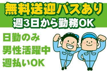 仕事内容 <新着/長期安定の倉庫内作業> \未経験OK/ 特別な資格や知識は必要ありません! ・倉庫での仕事が初めての方 ・異業種から転職したい方 ・就業にブランクがある方 みなさん大歓迎です◎ 未経験からスタートした方も 多数活躍しています! \働きやすい勤務形態/ 倉庫内の仕事だと夜勤もありそう! というイメージですが、 日勤のみの勤務で週3日から勤務OK! 「少ない日数で無理なく勤務希望」 「週5日フルタイムでしっかり働きたい」 「夜勤がきつくなってきて日勤で働きたい」 といった方にもオススメです◎ 【ポイント】 ・経験不問、未経験歓迎 ・学歴不問 ・ブランクOK ・週3日から勤務可能 ・若手から中高年まで活躍中 ・男性スタッフ活躍中 ・週払いOK 【詳しいお仕事内容】 アパレル商品を取り扱う倉庫内で デバンニング作業を行っていただきます。 デバンニングとは... コンテナの中から貨物・荷物を取り出す作業です。 物流の業務が初めての方へも 先輩社員が一から教えますので 不安なく取り組める環境が整っています。 施設内にはカフェテリアや コンビニエンスストアも併設されています! 休憩やお昼ご飯にも選択肢が多く、 便利で快適な職場です◎ ・未経験から挑戦したい! ・正社員で荷役業務に従事していた ・力仕事には自信がある ・荷物の積み下ろしアルバイト・パートの経験がある ・洋服やファッション雑貨が好き! ・家から通いやすい場所で働きたい ・ハローワークで底内作業の仕事を探していた という方も大歓迎です! 【勤務地について】 流山市平方にある倉庫内での勤務です。 江戸川台駅から徒歩で18分、車で10分の距離です。 車(マイカー)・バイクでの通勤もOK! 江戸川台駅・流山おおたかの森駅から 無料送迎バスも運行中! 近隣市町村からも通いやすい立地です。 ◎職場見学できます! ◎出張面接致します ◎面接日や入社日・勤務開始時期の相談もOK! 気になる点やご不明点等も お気軽にお問い合わせください。 お電話または応募フォームよりご連絡ください。 <電話応募・お問合せ先> TEL.04-2940-0800 (受付/9時~17時)