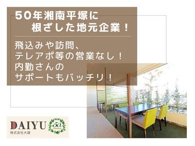仕事内容 ―――――――――――――――――― 2024年7月に立ち上げた新部署!! 不動産会社の営業サポート✨ 創業52年目の大雄で 安心して働きませんか? ―――――――――――――――――― ✨月給35万円~+賞与(歩合)年2回 (業績による) ✨ノルマなどは一切ありません◎ ✨お客様のことだけを考えて ご案内するスタイルです! 【仕事内容】 ⭐基本的には… お客様がインターネットや チラシを見て売買物件について 当社にご連絡を下さいますので まずはその対応をお願いします! ■電話応対の仕方 ■ご案内する項目 など 先輩社員がしっかりレクチャーいたします◎ ✨飛込みや訪問、テレアポ等の営業なし! <内勤さんのサポートもバッチリ!!> お客様から丁寧にヒアリングし、 より良い提案をすることが出来ます。 知識がなくて不安・・・という方でも 安心してスタートできる環境です♪ ✨50年平塚に根ざしており、 沢山のお客様から選ばれ ご来店やお問い合わせが絶えません! 仕事とプライベートを両立して頂きたいので、 当社では ◯夜遅くまで勤務 ◯無理な納期を設定する ◯一人で遅くまで残業 なんて事はありません! 残業をしない働き方を推奨しています。 ※ほとんどが遅くとも 19:30ごろまでに帰宅しています! ―・―・―・―・―・―・―・―・―・― ⭐株式会社大雄のここがすごい⭐ 当社は、不動産業界でも人気の 湘南エリアを支え続けています。 長年続けられている理由は、 百年企業を目指す当社が、 古い働き方をやめたからです。 「全員で一人のお客様を対応する」 という風土で、スタッフ同士が 自然と助け合える職場を築いています。 また、これまで培ってきた知名度があり、 ご来店やお問合わせの数も豊富! 成長の機会を担保しながら、 残業なしでプライベートも大切に出来ます! ⭐地域に根ざした安定企業⭐ 地域に根ざす企業で、 不動産の賃貸・売買・リフォーム・設計など、 不動産のことなら何でもご相談頂ける 事業の幅広さがあることから、 「不動産の事は大雄さんに」と言われるほど、 地元の方々から厚い信頼を得ている当社。 その分、ポストは豊富にあり、 将来的にはリーダーのポジションも目指せる環境です。 (管理職登用実績あり) そんな当社はこれからも、 平塚に住む・住みたい方々の為に、 百年企業を目指して、 不動産事業を続けていきたいと思います。 ―・―・―・―・―・―・―・―・―・― ▽▲▽Instagram▽▲▽ 当社の情報や物件の情報だけでなく 平塚市内の情報なども投稿しております。 下記からInstagramをチェック☟ https://www.instagram.com/daiyu_hiratsuka/