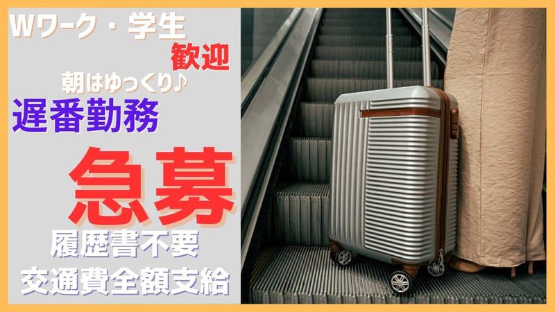 仕事内容 \ 三井ショッピングパーク / ららぽーと愛知東郷 人気の施設で販売のお仕事しませんか⭐ 時短勤務OK! パート勤務OK! アルバイトデビューの学生さんOK! ≪WワークもOK!≫ *平日は20時まで、週末は21時まで営業しているので学校帰りやお仕事終わりの短時間勤務も可能◎ 車通勤も可能なので、通勤ラクラク♪ ✅お願いたいお仕事内容はコチラ▼ ・接客販売 ・レジ対応 ・在庫整理 ・店内清掃 など 接客に関する知識は先輩スタッフが 丁寧に指導するのでご安心ください(^^) ー [服装] 黒・紺・白のシンプルなコーディネートOK。 足元はスニーカーでの勤務◎ ー [シフト] 営業時間/10:00~20:00 ※土日祝日は10:00~21:00 基本シフト/ 遅番 11:15~20:15(休憩1.5h) ※土日祝日は12:15~21:15(休憩1.5h) ✅就業開始時間は調整可能◎ 例えば、 ◆15:00~20:15 ◆18:00~20:15 などの短時間勤務もOK! ✅週末のみの勤務もOK! Wワークの方も夕方~の勤務OK! 例えば、 ◆16:00~21:15 ◆18:00~21:15 など あなたに合った時間での勤務可能◎ 週2日~、1日4時間~OK! ご希望条件をご相談ください^^ ー ✅こんなお客様がご来店▼ 『今度使いたい予定がある』 『新しいものに買い換えたい』 など使用目的のあるお客様が多いので 接客の負担も少なく、未経験の方でも はじめやすいお店です。 ✅おススメポイント▼ ①私服勤務で商品の購入も不要! 白や黒などシンプルなお色の合わせで 朝も迷わなくて◎ ②通勤にかかる交通費は全額支給! 無駄な出費はカットできます。 駐車場完備でマイカー通勤もOK。 ガソリン代の支給あり! ③希望休の融通ききます! 連休や、試験期間などご予定に合わせて 毎月のシフトの作成をします! みんなが働き続けやすいように協力体制 バッチリです◎ ー ✅ブランド紹介▼ ~日本の代表的なスーツケースブランド! 【ACE】のスーツケースは品質もデザインも一流品!海外の方からの支持も高く、これからの季節に大活躍アイテムです! 商品はたくさんありますがサイズが違うだけ、デザインが少し違う、など覚えやすい商品が揃っているので販売初心者さんも大丈夫! ~~~~~~~~~~~~~~~~~~~~