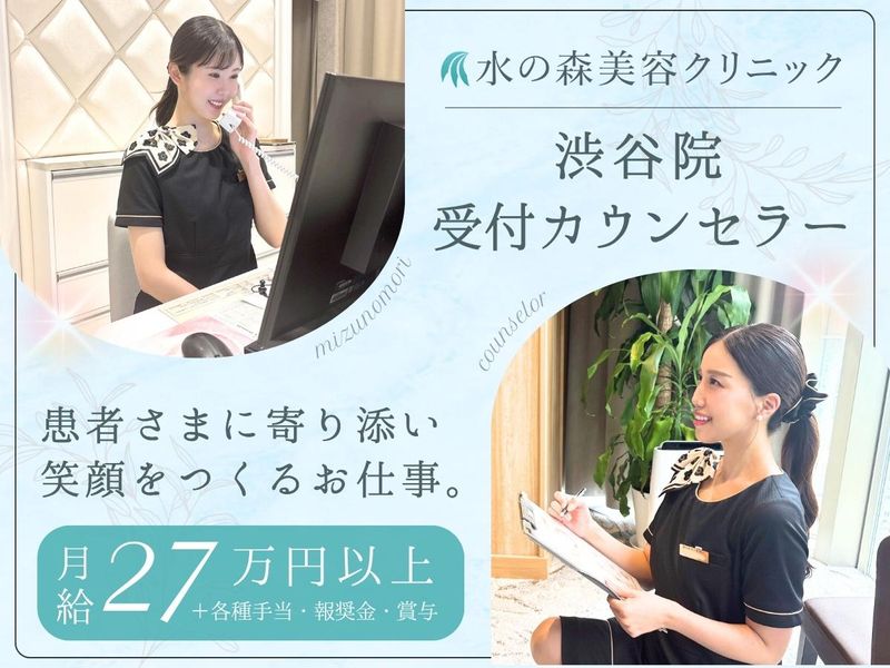 仕事内容 渋谷駅近くに2024年12月に開院★ カウンセラースタッフ大募集! ノルマ・セールスなし&充実待遇! 「利益主義」ではなく「患者様中心主義」の考えを大切にしている水の森美容外科。 その姿勢がお客様から信頼され、この環境下でも順調に事業を拡大中! 【具体的な仕事内容】 ・患者様の予約受付 ・患者様との電話応対 ・カウンセリング ・手術の手続き ・事務業務など *外科美容の知識が身につきます 美容に関してお悩みを持つ患者様に寄り添っていくお仕事です。 プラン・料金の説明、手術までの流れの説明や、医師には相談しにくいことを代わりに伺うなど、 最適なプランで安心して施術を受けられるようサポートをお願いします。 当クリニックでは、患者様を身内のように思い、お悩みに誠実に対応しています。 おかげさまで、沢山のお声をいただき、この度新院をオープンしました。 メリットデメリットを正直にお伝えし、本当に必要な施術のみを受けて頂いているので 無理な営業行為は一切行いません。押し売りやノルマが無いからこそ、自分自身に嘘をつかず、 胸を張って働くことができます。 ワンランク上の接客を学び活かしませんか? 【1日の仕事の流れ】 09:30 朝礼発表・唱和 10:00 患者様応対、事務業務 11:30~13:00 交代で昼食 16:00頃 交代で休憩(おやつタイム) 19:00 勤務終了 【先輩スタッフからの一言】 当院のスタッフの多くが業界・職種未経験からスタートしています。 前職は脱毛スタッフやエステティシャンといった同業でも異職種だったり、 アパレル店員や一般事務など業界そものが違うなど。 もちろん同業・同職種の勤務経験を経て転職してきたスタッフもいます。 最新の美容機器での施術もあり、スタッフも興味深々! 先輩後輩関係なく、個々の知識や技術を出し合いながら 学び合っていく風土ができており、 「患者様にご満足いただくためには?」を考えながら みんなでスキルアップを目指しています! ~受付カウンセラー:Tさん~ 美容好きがきっかけとなり、患者様第一主義を掲げる水の森美容クリニックに転職しました。 一番の魅力は、無理な勧誘がなく、必要な施術だけを提案できる誠実さです。 患者様からの信頼も厚いですし、友人や家族にも自信を持って勧められます。 未経験での入職でしたが、研修のおかげで着実に成長することができました。 現在は主任としてスタッフの成長をサポートする役割にやりがいを感じています。