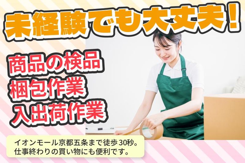 仕事内容 ◆◇◇◆◇◇◆◇◇◆◇◇◆◇◇◆◇◇◆ もくもく作業で、しっかり収入。 最高時給1,500円。 “軽作業”だけど、安定感は本気です。 ◆◇◇◆◇◇◆◇◇◆◇◇◆◇◇◆◇◇◆ ■当社の魅力 ✅最高時給1,500円の軽作業 時給1,300円~スタート。 土日祝(6~8月の繁忙期)は時給UP。 フルタイムなら月収も安定します。 ✅週3日~/1日6時間~OK 10:00~17:00の時間帯を含めばOK。 生活リズムを崩さず働けます。 ✅未経験・資格不要 検品・梱包など、シンプル作業中心。 一部座ってできる作業もあります◎ 未経験から始めたスタッフも 多数活躍中です。 ✅アクセス抜群 イオンモール京都五条まで徒歩30秒。 仕事終わりの買い物にも便利です。 ――――――――――――――――――――――― ■仕事内容 倉庫内での軽作業業務をお任せします。 具体的には… ・商品の検品 ・梱包作業 ・入出荷作業 など 扱うのは、 アパレル・雑貨・ぬいぐるみ・タオルなど。 特別なスキルや資格は一切不要です。 作業は一つずつ覚えればOK。 最初は先輩がしっかりフォローします。 ■職場の雰囲気 20代~40代の男女が活躍中!(男女比50:50) 1人でもくもく作業するのもOK! 明るく話しやすい職場環境です。 ――――――――――――――――――――――― ■ー仕事内容・職場の雰囲気・働く人の声ー■ 応募前に知っておきたいこと、ぜひご覧ください! ・採用サイト https://site9.saiyo-dekirukun.com/orizum.world ■当社に関するインタビュー記事です ・「500年続く会社を目指したい」:藤木社長 https://note.com/orizum/n/n600965171d44 ・「クリエイティブな発想で喜びを届けたい」武藤課長 https://note.com/orizum/n/nd517f4ff12f0 ・「有言実行! 後悔しない毎日を積み重ねる」板橋課長 https://note.com/orizum/n/n6982b13f5b67 ・「仲間と共に挑戦し続ける会社」木下課長 https://note.com/orizum/n/nc53d047045d3 ――――――――――――――――――――――― ■ー各SNSはこちらー■ ■ Instagram https://www.instagram.com/o_f.youzen/?hl=ja ■ X https://x.com/orizum_jp ――――――――――――――――――――――― ■最後に 軽作業だけど、 「ちゃんと稼げて、ちゃんと続けられる」。 そんな仕事を探している方に、 ぜひ見てほしい求人です。 まずは話を聞くだけでもOK。 あなたのご応募をお待ちしています。