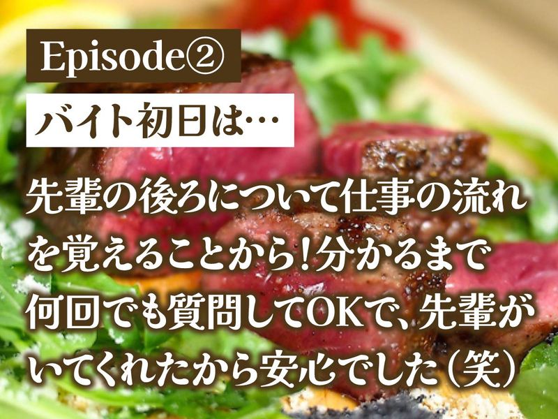 求めている人材 <未経験歓迎> <初アルバイト応援> ★金土勤務できる方、優先採用! ★飲食経験者は即採用有 ・人と話すことが好きな方 ・人見知りだけどこの性格をなおしたい…! ・ホールじゃなくて料理ができるようになりたい どんな方でも大歓迎(*ノ>▽<)ノ 飲食バイトをしてたけど、新しい環境で卒業までいろんな経験や思い出が作れるお店で働きたい! と入ってきたコなど様々です☆ - ★staff皆…長続きの秘密★ ✅先輩優しすぎ ✅雰囲気が好き ✅失敗しても怒られない ✅頑張った日はご褒美?! ✅まかないで胃袋つかまれた 等、ココでは語りつくせません('v')
