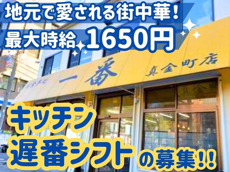 仕事内容 ■回■回■回■回■回■回■回■回■回■ \ ✨店舗拡大予定につき増員募集✨ / ⭐30代活躍中!男性スタッフ多数在籍☆ ⭐15:00~25:00&週3日から相談OK◎ ⭐駅近通勤ラクラクで続けやすさ抜群♪ ■回■回■回■回■回■回■回■回■回■ 個性あふれる街中華を提供する 『お食事処 一番 真金町店』 でのキッチン業務をお任せします! ✅仕込み作業 ✅メニュー調理 ✅盛り付け など ✅発注業務 ✅オーダー取り ✅お料理の配膳 ✅レジ・お会計対応 などのホール業務や管理業務などを お願いする場合もございます。 まずはカンタンなお仕事からお任せ! 徐々に慣れていっていただければOK◎ 焦らずしっかりと身に付けましょう!! =================== 「変わらぬ味・変わらぬボリューム」を 手作り調理で安心&安全な中華料理を 60年以上提供している中華料理店です✨ カウンター席・テーブル席・お座敷など たくさんのお客様にご来店いただける 広々とした店内は、日々常連客を中心に 多くのお客様で賑わい、活気ある雰囲気。 そんな当店で楽しく和気あいあいと、 わたしたちと一緒に働きませんか? ✨HPもご覧ください✨ https://minnano1ban.com/recruit/ ===================