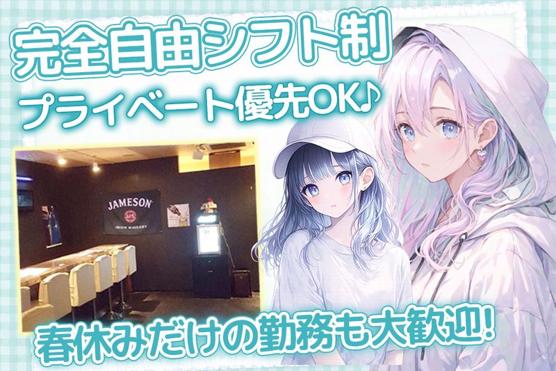 求める人材: ◆18歳以上 ◆未経験歓迎 ◆学生歓迎 ◆フリーター歓迎 ◆Wワーク歓迎 ◆学歴不問 ◆20代・30代活躍中 接客業が初めての方や、 ナイトワーク未経験の方も大歓迎です。 カフェや居酒屋などの飲食アルバイト経験がある方も活躍できます。 もちろん、ガールズバーやコンカフェなど 経験がある方は優遇いたします。 ブランクがある方や副業として働きたい方もお気軽にご応募ください。 「人と話すことが好き」 「楽しく働きたい」という方にはぴったりのお仕事です。 まずは気軽な気持ちで応募してみてください。