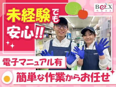 仕事内容 ●お任せするお仕事は… 野菜や果物を扱う部門! ■重さを計る ■袋やパックに詰める ■ラップをかける ■店頭に陳列する etc. コツコツ黙々と進められる、裏方業務☆ 『旬』や『美味しい食べ方』にも詳しくなれますよ◎ ●経験問わず活躍できる環境! #【安心ポイント1】 電子マニュアルあり! #【安心ポイント2】 初めての方でも出来る、簡単な軽作業からお任せ! #【安心ポイント3】 正社員や先輩スタッフがしっかりとサポート! 教育&フォロー体制がバッチリ整っているので、 どなたでも安心してチャレンジできますよ♪ ●スーパーベルクスについて 昔ながらの八百屋さん、お肉屋さん、 お魚屋さん、お惣菜屋さんを一つに集めたような 地元密着型の食品スーパーマーケット! 『思いやりの心』を大切にしており、 スタッフ一人ひとりが心地よく あたたかな気持ちで働ける環境です♪ HPも是非ご覧ください! https://www.baitoru.com/op477685/ 【先輩スタッフの声《40代/女性》】 野菜や果物の瑞々しさ、新鮮さ、種類豊富さ等の理由から よく利用するスーパーがベルクスでした。 買い物をする中で興味が深まり、入社を決意。 保管方法や、切り方の工夫点etc. 家庭でも活用できるコツをたくさん知れて、勉強になります。 また、ぬか漬け作り等にも携わらせてもらい わくわくする経験ばかりで毎日楽しいです! << 店舗・アクセス詳細 >> 「北松戸駅」西口から新坂川を右に。 北松戸橋を渡って直進400m位。 古ヶ崎五差路から馬橋方面に約1km、 北松戸工業団地入口交差点にお店はあります! 「松戸駅」と日大歯科病院を結ぶ、 京成バス[松81]『工業団地入口』バス停より徒歩1分。 ※松戸駅から約8分