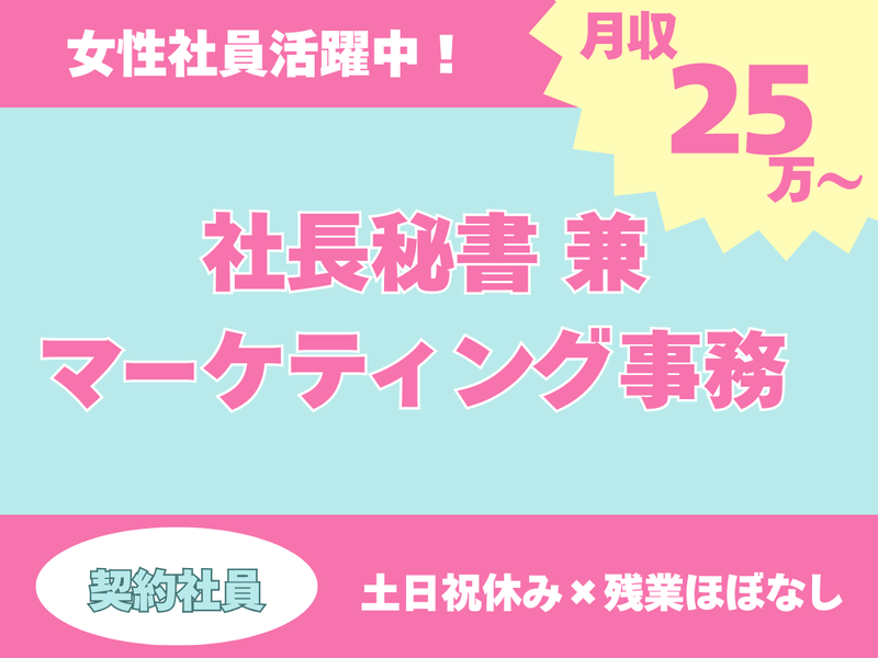仕事内容 ╭───────────╮ 社長を支え、 ブランドを広める。 その経験は、 一生モノ。 ╰───────────╯ ⭐ 仕事内容 ──────────────────── 東証スタンダード上場 「エリアリンク」で 特別な事務職を募集。 ✅ 社長秘書業務 スケジュール管理や 出張の手配、 会議資料の作成など。 経営の近くで働く 貴重な経験です。 ✅ マーケティング事務 販促資料の作成補助、 社内広報の配信、 自社サイトの更新など。 部署のメンバーを バックオフィスから 支えるお仕事です。 「誰かの役に立ちたい」 「気配りには自信がある」 そのホスピタリティが 一番の才能になります。 ⭐ エリアリンクの魅力 ──────────────────── ⏩ 1.圧倒的な安定性。 主力事業「ハローストレージ」は 掲載物件数・全国No.1。 一度契約すれば収益が続く 「ストック型ビジネス」のため 経営基盤は極めて盤石です。 安心して長く働ける環境が 整っています。 ⏩ 2.女性が輝く「えるぼし」。 女性活躍推進企業として 厚生労働省から最高位の 「えるぼし(3つ星)」認定を 取得しています。 産育休の取得実績はもちろん、 ライフイベントを経ても キャリアを諦めずに済む 風土が根付いています。 ⏩ 3.充実の福利厚生。 熱海や軽井沢にある 保養所が利用可能。 社員持株会や 確定拠出型年金など、 上場企業ならではの待遇で あなたの生活を守ります。 ⭐ 入社後のキャリアパス ──────────────────── 単なる「作業員」では終わりません。 あなたの適性を見ながら、 仕事の幅を広げていけます。 ⏩ STEP1:基礎固め まずは秘書業務と 定型的な事務作業を通じ、 会社と部署の動きを 把握してください。 ⏩ STEP2:スキルアップ ゆくゆくは、 広告原稿の校正や データの集計・作成など、 マーケティング実務の サポートもお任せします。 ⏩ 将来の姿 部署の「縁の下の力持ち」 として欠かせない存在へ。 一流のマナーや段取り力、 マルチタスク能力など、 どこへ行っても通用する 市場価値の高いスキルが 確実に身につきます。