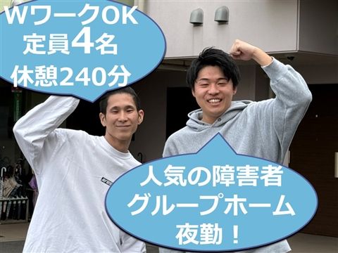 大人気の夜勤アルバイト!WワークOK◇休憩240分でしっかり休めます◎人気の障害者グループホーム(定員4名)♪資格不問!【横浜市都筑区・センター南駅・障害者グループホーム・世話人・夜勤アルバイト】