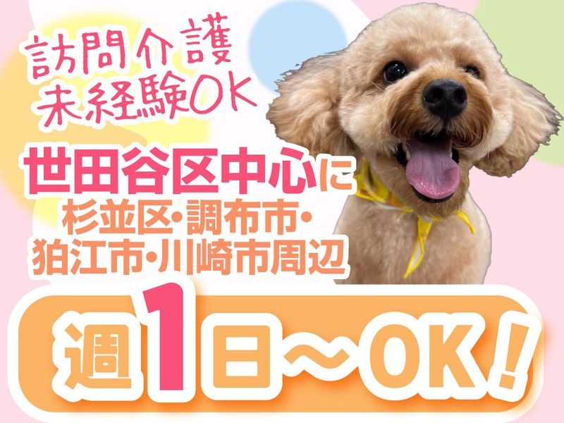 仕事内容 ✼••┈┈┈┈┈┈┈┈┈┈┈┈┈┈┈┈••✼ ✅残業ほぼなし! ✅有給消化率100% ✅若いヘルパーさん多数活躍 ✅遠方の方、オンライン面接OK ✅未経験・無資格には資格取得補助あり ✅週1~OK・無理なく始められる♪ ✼••┈┈┈┈┈┈┈┈┈┈┈┈┈┈┈┈••✼ ⏩お仕事について 利用者様宅へお伺いし、 生活支援・介助をお願いします。 当社は障がい者支援福祉サービスを 主にしており、知的障がいや身体障がい、 重度障がいを持った小さなお子様や、 成人の方のご自宅に訪問して 日常生活をサポートしています。 ⏩訪問エリアについて 世田谷区を中心に、杉並区、調布市、 狛江市、川崎市登戸周辺地域。 電動自転車の支給があり、 直行直帰も可能です♪ ⏩スタッフの9割が介護未経験スタート 未経験・無資格の方は、 資格取得支援補助で 資格を取得していただきます! ✅会社で資格取得補助あり! ✅費用は全額会社負担で、個人での出費一切なし! 資格取得後も、新人さんをいきなり 一人で利用者様の介護をお任せする ことはないのでご安心ください。 まずは先輩について現場を学び、 ヘルパーさんが安心するまで 同行する研修などもあります! (週1~5日同行研修/時給1226円) 前職の業種・職種は問いません! 介護業界にご興味があればどなたも大歓迎! 転職活動中の方、アルバイト・パート・ フリーターから初めて正社員を目指す方も♪ 週1日~OKだから、かけもちやWワークも 可能ですよ! ⏩介護経験者は即戦力! 介護職・看護助手・訪問介護・デイサービス 介護職員や、グループホーム・介護施設・ 障がい者支援施設・福祉施設で勤務経験 ホームヘルパーの経験がある方は、 即戦力として活躍できますよ!! ⏩若手の多い活気のある職場 スタッフは現在常勤8名、 非常勤12名で20名となります。 当事業所は若いヘルパーさんが 多いのが強みであり長所です! 20代の若手から30~40代まで活躍中! ===================== 【まだまだ嬉しいポイントあり♪】 ★入社祝い金アリ! ★未資格者は取得時に取得祝い金5万円 ★髪型・髪色自由!自分らしく働ける♪ ★特定処遇改善加算取得事業者 →特定処遇改善加算はボーナス時に 全額分配支給します!
