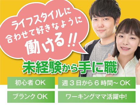 シフト・勤務時間 週3日以上、1日6時間以上 朝~昼/昼~夕/夕~夜 9:30 ~ 22:40(シフト制) ◎1日8時間できる方歓迎♪ ◎週3日~、1日6hから勤務OK♪ 業務時間に関してはお気軽にご相談ください。 シフト例) 早番/09:30 ~ 18:30 遅番/13:40 ~ 22:40 etc ※時間、日数はライフスタイルに応じた相談が可能です!