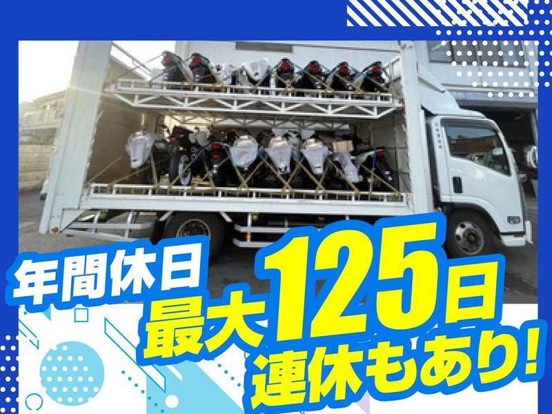 仕事内容 \20代、30代のスタッフが多数活躍中!/ 体制強化のための増員募集 日勤×土日休み×残業ほぼなしで働きやすい! ■日新運送株式会社のここがいい! ✅日勤のみ&残業ほぼなし(月5時間以下) ✅16時頃には帰社できる場合もあり! ✅土日休み(年間休日最大125日) ✅月1回以上の3連休あり ※月曜祝日は休み &月曜祝日がない月でも月1回は 平日の月曜休みあり ✅入社1年目で年収400万円越えも可能! ✅賞与年3回+各種手当あり 家族との時間やプライベートを 大切にしながら、 安定した収入を得られる環境です。 ==================== ■仕事内容 2t・3tトラックを使用し、 ホンダの新車バイクをバイクショップなどへ 配送するお仕事です。 ドライバー経験は一切不問! 中型免許、または2017年3月以前取得の 旧普通免許をお持ちの方であればOK! ■具体的な仕事の流れ ・8:00~ 配送先へ出発 ・9:00~ 配送先でバイクの積み降ろし ・13:00~ 昼休憩 ・15:00~ 翌日配送分の積込み ・17:00 帰社・雑務対応 ■配送について ・配送エリア ①東京・千葉エリア ②神奈川・静岡エリア ③多摩エリア ・走行距離:1日150~300km程度 ・配送コース:1~2日前に共有 ==================== ■丁寧な研修あり&負担の少ない作業環境! 最初は先輩のトラックに同乗し、 仕事の流れや運転のポイントを 覚えるところからスタート。 配送ルートや積込みのコツなど、 一つひとつ丁寧に指導します。 積み降ろしは パワーゲート車(自動昇降機付き)を使用。 バイクも押して動かせるため、 体への負担は最小限です。 ==================== ■若手活躍中!スタッフ同士の距離が近い 20代・30代の男女が活躍中! 研修制度が整っているため、 経験がなくても安心して始められる環境です。 素直に知識ややり方を吸収できる方や、 運転が好きな方に向いています。 帰庫後に自然と会話が生まれるなど、 スタッフ同士の距離も近く、 働きやすい雰囲気が特徴です。 入社後にバイクに興味を持つ方もおり、 知見を広げられる環境です! ==================== ■現在活躍中のスタッフの入社動機は様々 1.「家から近くて通いやすい」 世田谷区(小田急線沿線)、 調布市、狛江市、三鷹市、 武蔵野市、稲城市 川崎市(宮前区、高津区、多摩区) などからも通いやすく、 車・バイクもOKです◎ 2.「年間休日最大125日&残業ほぼなし」 土日+月曜祝日休み&残業がほとんどない為、 家庭やプライベートと両立がしやすい! 月曜祝日がない月でも 平日月曜日を休みとした3連休があり、 ◎土日休み=家族や友達との予定を合わせやすい ◎平日休み=混まない日に出かけられる という両方の魅力を味わえると好評です♪ 3.「長く安定して働ける環境」 荷主が大手企業様の為、仕事量が安定しています。 「仕事が少なくなって収入が減るかも、、」 なんて心配は無用です。 また、早出残業が0でも 基本給 27万2000円~+手当 の安定収入があり、長く安定して働ける環境です。