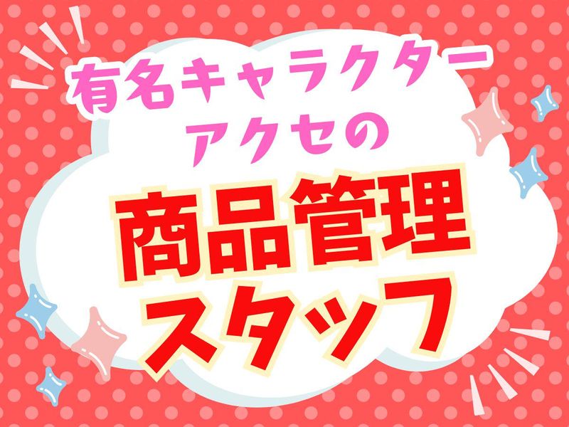 仕事内容 みんなが知っている 有名キャラクターアクセサリー等の 商品管理スタッフ大募集! 主婦の方をはじめ、 幅広い年齢層の方が活躍しています! 土日祝休みなので、 家庭との両立も◎ 勤務スタートは9:30~となりますが、 1日3.5時間からご相談ください。 子どもがまだ小さい方も安心♪ フルタイム働ける方は 優先的に採用します! 【お任せするお仕事】 ◆商品の数量の管理 ◆入荷商品の品質、数量等の確認 ◆入出庫の確認 ◆出荷商品のバーコード出力、管理 ◆受注プリントアウト ⇒商品ピッキング ⇒出荷商品の入力 ⇒納品伝票出力 ⇒発送 ◆備品発注 その他 ※簡単なお仕事です!