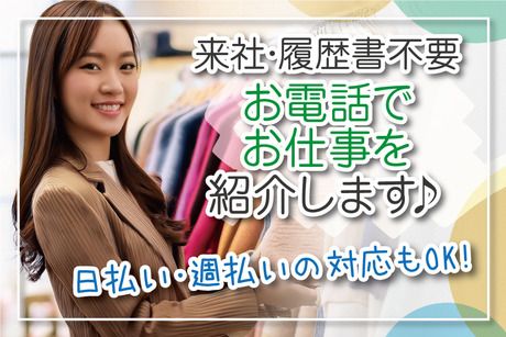 選考プロセス 平日10~19時の間のWEB応募には 応募確認後スグに入力頂いた電話番号に06-6225-8324から連絡します。 その際にシフトや開始日等の希望をうかがい、お仕事を紹介します。 ※連絡時にご不在の場合は携帯番号を入力頂いている場合はショートメッセージをお送りします ※土日祝や10~19時外の応募は翌営業日に連絡します 【問合せ先について】 問合せ先:06-6225-8324 ☆不明な点やもう少し詳しくお仕事の確認をされたい場合などは お気軽にお問い合わせください。 ●弊社営業時間:平日10~19時 ※営業時間外でも対応可能な場合もあります。 応募方法 来社&履歴書不要! 必要事項を入力の上、【応募する】ボタンよりご応募下さい。 電話での応募も受付中! お急ぎの方は下記番号よりお電話をお待ちしております。