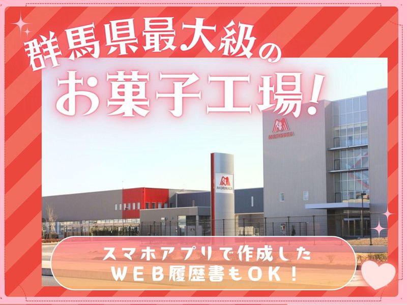 仕事内容 \ パパさん活躍中の職場 / .。*・゜*.。*・゜*.。*・゜*.。*・゜* お菓子の季節♪ <高崎森永>で長期安定! お菓子で人々を笑顔にするお仕事 始めませんか? .。*・゜*.。*・゜*.。*・゜*.。*・゜* 2026年、新しくスタートしよう! 勤務開始日はお気軽にご相談ください** 社員登用あり♪ . 2026年新スタート! 勤務開始日はお気軽にご相談ください** “あのお菓子を自分の手で作れる” という誇りを感じられる仕事です。 群馬で長く働きたい方、ぜひ一緒に “森永ブランド”を支えていきましょう! 【オススメしたいポイント5選】 (1)製菓工場として会社規模は群馬最大級!  ̄ ̄ ̄ ̄ ̄ ̄ ̄ ̄ ̄ ̄ ̄ ̄ ̄ ̄ ̄ ̄ ̄ ̄ ̄ (2)20~30代の若手社員が多数活躍中!  ̄ ̄ ̄ ̄ ̄ ̄ ̄ ̄ ̄ ̄ ̄ ̄ ̄ ̄ ̄ ̄ ̄ ̄ ̄ (3)長期休暇は9~10連休の実績あり**  ̄ ̄ ̄ ̄ ̄ ̄ ̄ ̄ ̄ ̄ ̄ ̄ ̄ ̄ ̄ ̄ ̄ ̄ ̄ (4)嬉しい日替わりの社員食堂を完備!  ̄ ̄ ̄ ̄ ̄ ̄ ̄ ̄ ̄ ̄ ̄ ̄ ̄ ̄ ̄ ̄ ̄ ̄ ̄ (5)作るお菓子は超有名!やりがいも*  ̄ ̄ ̄ ̄ ̄ ̄ ̄ ̄ ̄ ̄ ̄ ̄ ̄ ̄ ̄ ̄ ̄ ̄ ̄ . //////////////////////////// みんなが知ってる! キャンディ、チョコレート、 ビスケット、アイスクリームなどの 森永製菓の製造業務をお任せします! //////////////////////////// . <具体的な仕事の流れ> 〇仕込み・成型・包装の それぞれの工程を担当します 〇原材料の取り扱いや機械オペレーター、 品質チェック、商品のケース詰めの 作業もあります 〇食品製造となりますので 冷暖房が保たれた場所での勤務となります . \作っている商品は!/ . 『ハイチュウ』 『ビスケット』 『カレドショコラ』 『ダース』 『板チョコアイス』 『チョコモナカジャンボ』 『マリー』 『ムーンライト』 『チョイス』 などのスーパーやコンビニでも よく見かける森永のお菓子を作ります! 目に見えて製品化されるから やりがいも感じれます! . \ 入社後、安心の研修制度 / 勤務開始後、各グループに分かれて 研修をしながら業務を行っていきます。 「製造業」や「工場」などで勤務の 経験がない方でも働きやすい職場です! . 当社では各ラインにより、 グループ・チームで工程を行っております! それぞれにライン長が配置して 先輩社員が新人さんの フォローや教育をしています** 休憩中は年齢の関係なく 休憩所のお菓子を食べながら コミュニケーションを取っています!