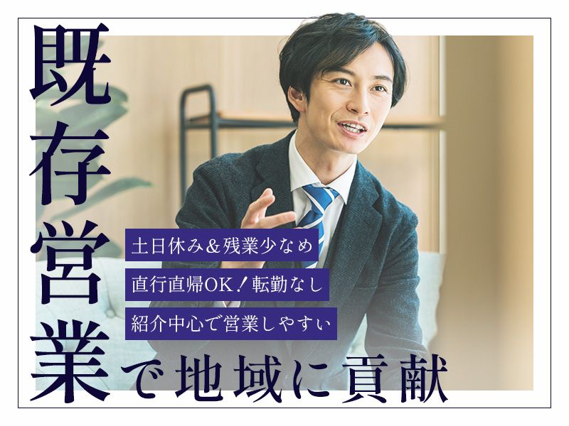 アピールポイント <地域密着の安定営業> 既存顧客中心のため、新規飛び込みや無理な営業ノルマはありません。三島市を中心に長く働ける職場です。 <キャリアアップ・管理職候補> 将来の管理職候補として、キャリアパスも用意。着実に経験を積んで営業リーダーへと成長できます。 <ワークライフバランス抜群> 残業は月10~20時間、土日休みでプライベートも充実。直行直帰OKで移動の負担も少なく、転勤もありません。