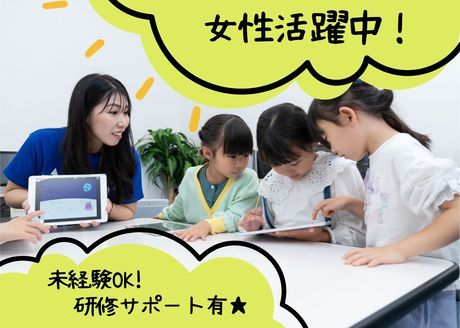 仕事内容 プログラミング教室の先生・インストラクター 入社後はオンラインでの研修あり! テキストやタブレットの貸出も一部行っておりますので、プログラミング初心者・初級者の方でも大丈夫♪ 「新しくチャレンジしてみたい」「子どもと一緒にスキルアップしたい」という想いをしっかりサポートをさせていただきます。 授業の雰囲気 授業は主に映像教材を使用しますので、先生方には受講生の疑問点を解消し、理解度を深めるお手伝いをしていただきます。 最初は難しいと思うかもしれませんが、まずは受講生との日常会話を楽しむことからスタートしましょう! スキルが身に付いたら、つまずいたり、困ったりしている受講生に声をかけ、一緒に考えてほしいと思います。 当社の想い 次世代の子どもに必要なスキルとして重要視されているプログラミング。 そんな大注目のプログラミングを、すべての小学生・中学生にとって当たり前の習い事にしたい。 技術習得だけを重要視せず、課題解決力や企画創造力、プレゼンテーション力など、 社会を生き抜くために重要となるチカラの習得ができるようなスクールを目指しています。 先輩インタビュー 「子供たちが身近で『わかった!』という言葉が聞けることが嬉しいんです」 「チームワークも大切にした教室運営で、サポート体制もあるので安心して進められます」 「教室でのOJTや研修制度も充実で、学べる環境も整っています」
