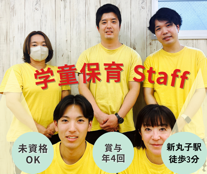 仕事内容 新丸子駅徒歩3分 定員約80名!学童でのお仕事* <主なお仕事内容> *学習補助 *子どもの見守り *イベントの企画 など やりたいことがあれば積極的に採用します! 送迎も出来る方は優遇♪ ※雇用期間の定めあり/年度契約(契約更新あり) .――゜+.――゜+.――゜+.――゜+. *子ども好きな方歓迎!無資格でも◎* 運動が好きなアクティブな子もいれば、室内で工作や本を読むのが好きな子、子どもたちの個性はみんな違います。 先生たちもそれぞれ好きなこと・得意なことを通じて、子どもたちに関わってくれると嬉しいです♪ 子どもたちと一緒に楽しみ、毎日楽しく過ごしましょう! .――゜+.――゜+.――゜+.――゜+. 学歴・年齢問いません。 「昔取った保育士の資格を活かして働きたい」 「子育ても少し落ち着いてきたし、ちょっとだけ働いてみようかな」 「子どもたちと関わる仕事をしたい!」 子どもが好きな方、是非一緒に働きましょう! <現在のスタッフさん構成> 20代 5名 30代 1名 40代以上 9名(送迎ドライバーさん3名含む) <スタッフさんへインタビュー> ・学生バイト終了後、一般の会社に勤めましたが結婚をしてパートを考えた際、職場環境の良さから戻って来ました(30代女性) ・パート職員でも仕事を任せてもらえるのでやりがいがあります(20代男性) ・職員間も学童の雰囲気もアットホームで温かいので居心地がいい職場です(20代男性) .――゜+.――゜+.――゜+.――゜+. <主な一日の流れ> ■13:00 登校 自由時間 室内遊び・宿題 ■15:30 おやつ ■16:00 自由時間 室内遊び・外遊び・宿題 <月・火曜日> アクティビティタイム <水・木・金曜日> イベントタイム ■18:00 学習タイム 掃除 ■19:00 帰宅 延長時間 夕食・くつろぎタイム ■21:00 最大延長帰宅