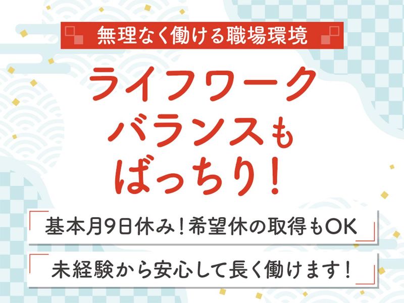 シフト制 勤務時間詳細 実働時間:1日あたり8時間 平均勤務日数:1ヶ月あたり19日 〜 25日 ⏰9:00~翌1:00(シフト制) ※月に2回、希望シフトの提出により 休日を調整しています ※各店舗間で協力し 月2回まで連休の取得も可能です ※「半年に1回は3連休を取得できる制度」 も導入しています!