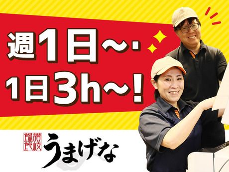 仕事内容 嬉しい福利厚生♪ ◎土日祝手当:+100円/1h <日払い制度あり!> 急な出費やショッピングも安心! <わかりやすい昇給制度あり> 各ポジションの昇給基準をクリアすれば 時給+10円~最大300円UP! <オトクな食事補助あり!> まかないは全品70%割引です <髪色自由!> 不快感を与えない髪色ならOK♪ \チームワークでこだわりうどんを提供/ うどんの本場! 讃岐生まれのはなまるうどん系列「うまなげ」で 調理・接客のオシゴト♪ ******************** \こんな方にオススメです♪/ ◯フルタイムで稼ぎたい方 ◯かけもちで収入UPしたい方 ◯深夜勤務がない環境で働きたい方 ◯プライベートも大切にしたい方 ◯チームワークが好きな方 ◯うどんが好きな方♪ ◯食べることが好きな方 ◯調理・接客スキルを身につけたい方 ★40~50代男性活躍中♪ ******************** 下記のポジションに分かれて、セルフ方式で こだわりのうどんを提供しています。 ******************** \役割を分担してチームでうどん作り/ ●うどん釜での麺ゆで ●天ぷら揚げ ●うどんの具の盛り付け ●レジ ●食器洗い ●ホール 担当ポジションはシゴト当日に、スキル・ 経験に応じて、シフトリーダーが決定! ******************** 調理をしたことがない、接客は初めて… という方でも心配いりません! ******************** \ていねいな研修とマニュアル完備/ まずは先輩スタッフに言われた通りに、 自分の役割の作業を行えばOK! ポジションごとに作業内容は異なります。 慣れるまで、繰り返し練習もできます! スキルを身につけて、チームワークで 美味しいうどんを提供していきましょう♪ 飲食店のオシゴトが初めての方も安心 \カンタンな作業からお任せ!/ 最初はシンプルな盛り付けや食器洗いなど、 難しくないオシゴトからスタート! 先輩もとなりにいるから安心♪ \慣れてきたら各ポジションを担当/ きっかけは「やってみたい」でOK! うどんをゆでる、天ぷらを揚げる、 レジでお会計など、できるポジションを 増やせば時給もしっかりUPします! 週1日~、1日3h~OK!シフト柔軟! \ライフスタイルに合わせて働ける/ ◯週1日~、1日3h~OK! ◯時間・曜日の組み合わせは自由! ◯シフトは2週間ごとの自己申告制 ◯勤務時間は短時間もフルタイムも 都合に合わせて自由に調整OK! ◯長期休暇やテスト期間など 1ヶ月のお休みもOK! ◯自分にあった働き方が可能! ◯平日のみ、土日のみOK! ◯扶養内勤務OK ◯Wワーク、副業OK ー <40・50代フリーター/平日週2日の場合> ◆火・木/10:00~14:00 ★仕事の後はまかないで遅めのランチ♪ ー フルタイムと短時間を組合せてWワーク中! 自分の都合で働けて、日払いも便利です♪ 幅広い年代の方が自分スタイルで活躍中! 学生さんから主婦・主夫、フリーターまで、 幅広い世代が自分らしい働き方を実現中! <学生> 平日は学業と両立で短時間、休日はフルで! <主婦・主夫> 家事・育児の合間に扶養内で働いています♪ 急な休みにも対応してくれます! <フリーター> 魅力は趣味や夢の実現に向けて 自分の都合でシフトを調整できることです!
