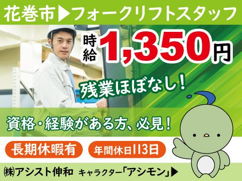 仕事内容 \フォークリフトスタッフ急募!/ フォークリフト免許をお持ちの方や ご経験がある方はどなたでもご応募OKです! 実務経験が少ない方やブランク期間のある方も歓迎! 「オススメポイント」 ・資格や経験を活かして活躍できる! ・お盆や年末年始休暇があるのでしっかり休める! ・資格があれば経験やブランクは問いません! ・交替勤務でしっかり稼げる! 「主なお仕事内容」 医薬品製造に使用する原材料を指示に基づき フォークリフトで「保管場所」へ運びます。 出荷の際は保管場所から出荷エリアへ移動し、 フォークリフトでパレットを運搬し、 トラックへの積み込み作業を行います。 その他、安全を保つために フォークリフトの点検・安全確認も行います。 <お仕事注力ポイント> 荷崩れを防ぐため、バランスを考慮した 積載が求められますが、安全運転や スムーズな移動を心がけて頂ければ、 それ以上に難しい作業はございません。 「作業環境について」 日勤時/屋外での作業が中心(製品移動・積み込み作業) 遅番時/倉庫内作業が中心(出荷準備やフォークリフト運搬) 【交替勤務でしっかり稼げる】 時給は1,350円と高時給!月収も20万円を超えます! 「せっかく働くなら収入にもこだわりたい…!」と お考えの方にオススメの現場です。 \出張面接もOK/ 出張面接も可能ですので、ご希望の場合は 事前にご連絡下さい(規定有) 「働きやすさ」で選ぶなら「アシスト伸和」に お任せください!他にも多数お仕事があります。 あなたに合ったお仕事探しが可能です。 ぜひ一度お気軽にご連絡ください!