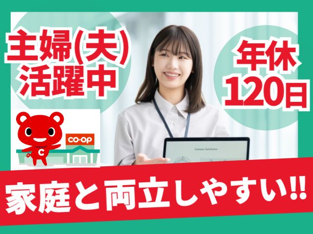 仕事内容 残業ほぼなし!18時退社! 【子育て世代活躍中】 30代・40代・50代の 子育てがひと段落して復帰された 主婦(夫)さんが多数活躍しています! 急な事情でのお休みにも対応可能! お子さんの熱や行事などでも理解のある職場です。 上司のサポートもあり、 経験のある先輩にも相談しやすい環境です! 【お仕事内容】 みやぎ生協の大代店にて、 組合員さんへコープ共済のご案内をお願いします。 興味を持たれた組合員さんには 契約までの対応も行います。 また、既にご契約されているお客様からの お問合せ・ご相談等もございます。 <ご案内するコープ共済って…?> 掛金がお手頃で、保障が手厚いのが特徴! ほとんどのコープ組合員の方にご加入いただいており 大変満足度が高いのでご案内しやすく、 安心しておススメできます! <お仕事の流れをご紹介!> ①来店された組合員さんへコープ共済をご案内 ②組合員さんのニーズにあった保障をご提案 ③共済カウンターの整理整頓など ④一日の終わりに報告書をまとめて業務終了! <このお仕事のやりがいは…?> 組合員さんのお悩みに対して CO・OP共済でなにができるかを考えて提案いたします。 ご契約をいただいた組合員さんに、 「けがをした時や入院した時にとても助かりました」と 声を掛けてもらえることがとても嬉しい瞬間です! 【充実の研修制度あり】 未経験の方でも安心して働けます! 慣れるまでしっかりサポートしますので 初めてで不安な方もご安心くださいね! 研修中でも変動なく給与を支給します! ・座学研修(入社後1~2週間) ↓ ・現場で先輩社員とOJT研修(1ヶ月) ↓ ・店舗配属後はマネージャーのフォローあり! 【こんな方におすすめ】 ・法人営業、個人営業、ルート営業の経験がある ・生命保険などの知識がある ・人と話すことが好き ・長く働ける職場が良い など 正社員・アルバイト・パートなど 前職の雇用形態や勤務経験は問いません! ご応募お待ちしております! 【商品について】 病気やケガなど、「もしも」のことが起きた際に 共済金をお支払いする「CO・OP共済」。 「CO・OP共済」は、1984年の事業開始以来、 40年以上にわたり全国の生協と力を合わせてきた結果、 970万人(2022年度末時点)の組合員やそのご家族にご加入いただき、 「大手4共済」の一つに数えられる規模にまで成長。 私たちは「CO・OP共済」という保障商品を通して 組合員のくらしに安心をお届けしています。