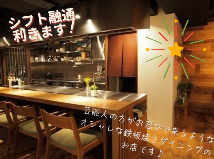 仕事内容 ◇未経験者OK! 「初バイト」の方も安心◎丁寧に教えます♪ ◇まかない無料♪ 絶品鉄板焼きが食べられる♪食費も節約できちゃう! ◇売上達成インセンティブ チームで頑張ればボーナスGET! ◇がんばりもしっかり評価します! 『バンドグレード表』を導入◎ スキルや貢献度に応じて時給UP 時給1600円の先輩スタッフもいます ⭐主な業務内容 ────────────────── ホール業務全般をお任せします。 ○ご案内やオーダー伺い ○ドリンクや料理の提供 ○お会計業務など 最初は先輩がしっかり横について教えるので安心。 「飲食バイトが初めて」という学生さんやWワークの方も、すぐに馴染めます! ⭐お店の雰囲気 ────────────────── 京風鉄板焼875(ハチナナゴ)は、 座席数20席(カウンター6席)のナチュラルシックな鉄板焼ダイニング♪ オーナー厳選の京野菜・ブランド牛など、 京都の食材を惜しみなく使った料理が 自慢で女性客やカップルに大人気のお店です♪ ⭐ 働きやすさに自信あり!チームで支え合う環境です ────────────────── 当店は厨房とホールがしっかり連携し、スタッフ全員でお店を盛り上げています。 忙しい時間帯を乗り越えたときの「やりきった!」という達成感や、仲間との一体感は個人店ならでは。 ・未経験スタートでも安心! 先輩が丁寧にフォローするので、飲食が初めての方でもすぐに馴染めます。 ・人間関係の良さが魅力 「人間関係で悩まない職場を探している」そんな方にぴったり! スタッフ同士の距離が近く、困ったときは自然に助け合える雰囲気です。 バイトデビューから卒業まで3~4年続けられる方がほとんどで、居心地もバツグン✨ 卒業後もお店に遊びに来てくれるスタッフがいたりと、素敵な仲間ばかりです。 ・働きながら社会経験も! 接客スキルやチームで動く力は、就活や今後のキャリアにも活きる経験になります。 ちなみに…オーナーの娘さんは現役大学生。 学生スタッフの気持ちも理解してくれるので、初バイトでも心強い味方になります♪