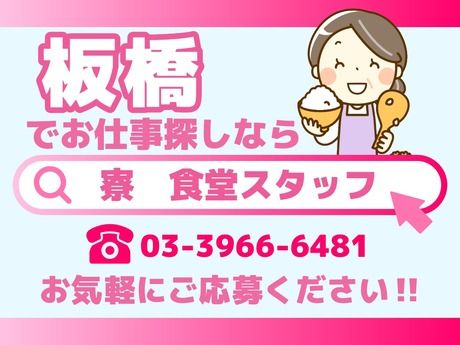仕事内容 学生さんが住んでいる「学生寮」調理場でのお仕事です ○●-●○ ご興味を持っていただけたら 03-3966-6481までお電話ください! ご質問やご相談も大歓迎です? ○●-●○ 今回の募集は寮での調理補助スタッフ。 食器を洗ったり、料理を盛り付けたり。 日頃の家事の延長で始められるお仕事です♪ 【作業の一例】 ◇野菜・具材を切る ◇お皿に盛る ◇食器を洗う ◇厨房の掃除 などシンプル作業! 未経験の方でも大丈夫! ――○・。☆―――――――――☆。・○―― 仕事に慣れてきたら、寮母さんの調理の お手伝いなどもお願いしますね! 未経験でも大歓迎! お仕事内容は丁寧にお教えします。 安心してご応募くださいね。 ――○・。☆―――――――――☆。・○―― 主婦さんを中心に活躍中! 「ずっと専業主婦だったけど、 子育ても落ち着いたし、 久しぶりに働きたいと思って始めました」 「パートで働く時間が リフレッシュにもなりました(笑)」 という方もいます☆ ブランクがある方も、 未経験の方も大歓迎ですよ♪ 無理のないペースで働いてくださいね。