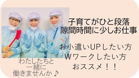 仕事内容 <おすすめポイント> ■髪型自由 ■モクモク作業するだけ ■接客がないため人見知りの人でも働きやすい ■自分のペースで作業に没頭出来る ■工場内なので天気に左右されない スキマ時間に稼げる!早朝のお仕事で収入アップ☆ ■効率よく隙間時間で働けて収入アップ ■早朝短時間だけなのでプライベート充実 ★お仕事内容はこちら★未経験者9割! ■食品工場内での機械洗浄 ■ブラシや洗浄機でお掃除 ■機械の分解、組立 ■先輩が優しく教えてくれる ■手順は覚えれば簡単 ■20~50代の幅広い年代の方が活躍中 車、バイク、自転車通勤OK!ガソリン代支給◎駐車場完備◎髪型自由で働きやすい☆ ■制服貸出し ■有給休暇 ■社会保険完備 ■駐車場完備 ■車・バイクで通勤OK ■交通費、ガソリン代支給 昭和38年創業の東証スタンダード上場企業☆食品工場機器の洗浄・殺菌を中心とした業務を行っています! ■食品工場の洗浄殺菌 ■ビルメンテナンス ■不動産業 ■介護事業 ■ホテル運営 ■フランチャイズ 衣食住に関わる仕事は景気に左右されにくく、お仕事の需要もなくならない! 安定した企業なので安心してお仕事ができます☆
