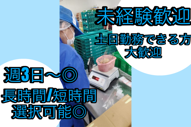 週3日~OK【農産品の加工作業】未経験歓迎♪扶養内勤務可能!土日に勤務出来る方は大歓迎◎履歴書不要!