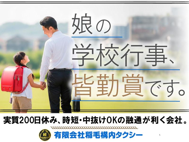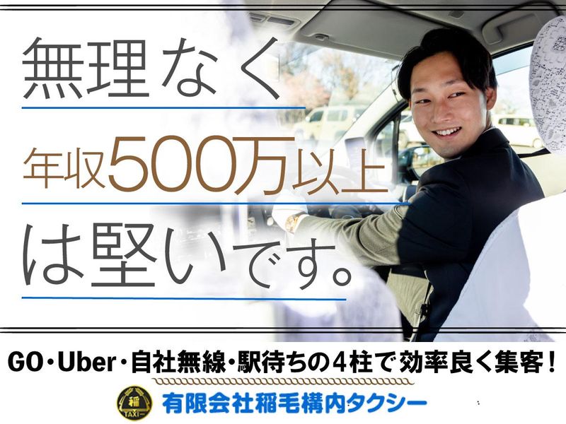 仕事内容 ◎59歳未満の方は全員面接確約◎ \電話応募も絶賛受付中!/ ============== TEL:043-277-8181 (受付9:00~18:00) ============== 雰囲気を見たいだけの方も是非! 最近入社された6名の方も実際に来社され、 じっくり話を聞いて考えてから、 ご入社を決められていました! もちろん、ご相談だけでも大歓迎ですよ♪ ━━━━━━━━━━━━━━━━━━━ \採用者インタビュー/ …………………………………… 学校行事、参加率100%です。 …………………………………… 子どものお迎え、授業参観、家族と夕食。 前職ではあきらめていた日常が、いま当たり前の日常になりました。 ●今日はお迎えがあるから早上がりして、次の日がっつり走ろう! ●来月末は授業参観があるから、この日は休みにしておこう。 ●この日は遅出、早上がりに。 そんな風に自由にスケジュールが組めて、ちゃんと稼げる。 無理なく働いて平均年収500万円以上。中には700~1000万円いってる方もいます。 毎日の働き方に融通がきくし、休みもたっぷりとれる。 地域を、人を、大切にする「稲毛構内タクシー」だからできる働き方だと思います。 (前職:宅配ドライバー/30代) ━━━━━━━━━━━━━━━━━━━ \魅力がいっぱい!/ ……………………………………… 当社タクシードライバーの 「意外な○○」をご紹介します! ……………………………………… 【Q】プライベートの時間が少ない? 【A】✕!隔日勤務のため、仕事が終わった後は次の勤務までほぼ丸一日フリー!公休に明け休みを踏まえると、実質200日以上も自由な日があるようなものなんです◎ 【Q】シフトは固定? 【A】✕!当社では、8:30~翌1:30の間で自由にスケジュールを組んでOK!時短勤務や日数調整まで、柔軟に対応しています! 【Q】普通免許だけじゃダメ? 【A】✕!必要な二種免許は教習費用や教習所手配まで、当社手配のもとご入社前に取得いただけますので普免があればOKです! ★当社ドライバーの平均年収は500万円!プライベート優先なら360万円~、収入優先なら800~1000万円の方が多いです。 ★さらに今年度は対前年比で売上15%~20%アップで推移しており、さらなる収入アップが予想されています! 【Q】稼ぐにはコツがいる? 【A】✕!当社では、自社無線の配車本数が地域トップクラス! ★タクシー利用率の高い千葉3エリアに移動範囲を絞った地域密着型スタイルでリピーターを漏らさず獲得! ★流しなどの無理な営業や無駄な待機時間をカット。 さらに2大配車アプリ「GO」+「Uber」ダブル対応!ダブルで導入している企業は少なく、千葉市内のタクシー企業の中でも当社が最速です! “探す”から“呼ばれる”へ。さらに稼ぎやすくなりました! 【Q】女性や若い人も多い? 【A】○!近年ママさんドライバーや若手の方からも何歳になっても続けられる座り接客の仕事として注目され、当社でも幅広い性別・年齢の方が活躍中です! 【Q】実は始めやすくて、続けやすそう? 【A】◎!当社では過去3年間のうち、採用54名中離職者はたったの3名!定着率は94%を誇ります。「続けられるか自信ないなぁ」と始めて、あっという間に1、5、10年過ぎてた…なんて方ばかりなんです! * * * 【仕事内容】 タクシードライバー <詳細> ◎担当エリア:千葉市-美浜区・花見川区・稲毛区 ※幕張メッセや稲毛海浜公園を中心に、大型ショッピングモール・アウトレットパーク・大型コンベンション施設・多目的スタジアムなどが多いエリアです。平時でも人口は十分に多いですが、イベント時はさらに効率よく稼げます。 ◎社内独自の無線・タクシー専用電話システム(病院・商業⇔弊社直通※約20施設に導入)・最新AI技術を搭載した次世代タクシー配車アプリ「GO」「Uber」導入・駅待ちの活用などの数々の営業手法を駆使することで、安定収入・高収入獲得が可能になります。 ◎車両保有数:59台(タクシー56台+ハイヤー3台) ◎ドライバー数:90名(AP込み)※1日出勤40名~ * * * 【二種免許取得・研修制度について】 ※二種免許をお持ちでない場合、ご入社前までに①の教習期間を通じて「普通自動車第二種運転免許」取得必須、取得後勤務開始となります。 ※二種免許を既にお持ちの方は②からご参照ください。 ①普通二種免許取得(ご入社前) ┗成田、高砂、稲毛のいずれかのセンターで研修を受講 ■合宿:7日間 ■通学:7~14日間 ※教習期間中はご入社前のため給与の支給はございませんが、通常25~30万円程度かかる資格取得・研修受講費用と通学交通費は会社で全額支給いたします!(※ただし支給条件あり)  ̄ ̄ ̄ ̄ ̄ ̄ ̄ ̄ ̄ ̄ ̄ ̄ ̄ ̄ ̄ ̄ ②社内研修 (A)社内講習(7日間) ┗車内機器の使い方・地理研修(主要病院・道路、お得意様先等) (B)登録センター講習(2日間) ┗乗務員証交付(確認テストあり) (C)適性診断(1日間) ┗運転傾向等を図るシミュレーション実技(1時間程度) ※給与支給あり  ̄ ̄ ̄ ̄ ̄ ̄ ̄ ̄ ̄ ̄ ̄ ̄ ̄ ̄ ̄ ̄ ③添乗指導(OJT研修/1~2日程度) ┗先輩同乗でお客様を実際に乗せて公道を運転 ※給与支給あり  ̄ ̄ ̄ ̄ ̄ ̄ ̄ ̄ ̄ ̄ ̄ ̄ 