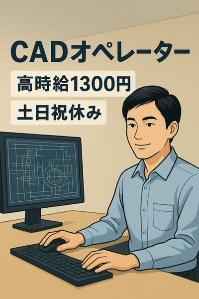 【CADオペレーター募集】土日祝休み&高時給1300円スタート車通勤OK◎