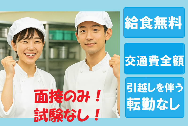 仕事内容 ✨土日祝休み!残業なし✨ 3年定着90%!創業60年の安定企業運営。 【 与野駅近くの小学校給食室 】 ─────────────────── 調理師資格と調理経験があればOK 学校給食未経験者歓迎! 【当社は飲食店から転職者も多数活躍中】 ─────────────────── 「流れ作業の調理に、物足りなさを感じていませんか?」 効率優先のセントラルキッチンや 深夜まで及ぶ飲食店勤務など今の環境に疲れているなら、 当社の「学校給食」という選択肢を考えてみませんか。 ・✦・✨ 学校給食室はココが◎✨・✦・ ✅ 完全、土日祝休み! ✅ 年間休日121日+有給休暇あり ✅ 夕方までで残業なし! ・✦✦・✨ 当社ならではの待遇 ✨・✦✦・ ✅ スタッフ同士の相談だけでお休みOK ✅ 業務完了後、定時前でも早上がりOK ✅ 春夏冬休みは「稼ぐ」「休む」選択OK ✅ 交通費全額支給/給食費全額負担 ✅ 制服・マスクなど全て支給。準備不要 ✅ 衛生上の待機でも給与6割保障! ✅ 引っ越しが必要な転勤なし ✅ 月1回、食品などが当たる抽選会あり 【お仕事内容】 浦和区(与野駅近く)の小学校給食室で、給食調理全般と食材管理をお願いします。 献⽴に従って毎⽇同じ⾷数を、みんなで⼀緒に調理するから、学校給⾷室が初めての⽅も安⼼ですよ スタッ6~7名で分担しながら作業しています ▶発注業務なし♪ ▶小学校は1食のボリュームが抑えめなので、実は身体への負担も少なめ♪ 午後の片付けもスムーズに終わるため、16時の定時退社は当たり前。 早く終われば定時前でも「お疲れ様でした!」がOK。夕飯の買い物も余裕を持って間に合います! 【 在職中の方もスムーズに転職できます】 ⏩面接1回のみ!筆記・実技なし ⏩応募は約1分でカンタン入力 ⏩電話応募も歓迎▶028-638-5655 (本社総務部) <こんな会社です> 全国にスタッフ3000名在籍の安定企業。 創業60年以上の実績で、⻑く働ける環境。 ■■■■■【 当社の魅⼒ 】■■■■■ ⭐3年定着率90%︕ 現場の無理がないオペレーションと、 お互いを尊重し合う⾵⼟があるからこそ︕ 現場巡回などで東京営業所のスタッフが丁寧にサポートします。 ⭐温かな社⾵︕ 当社はフルーツやビール等が当たる「プレゼント抽選会(毎⽉)」の実施など 従業員を単なる労働⼒ではなく、 共に歩む「仲間」として⼤切にする⽂化が根付いています。