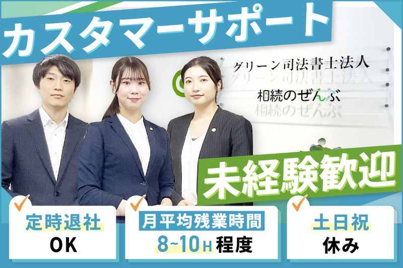 仕事内容 ╭━━━━━━━━━━━━━━━╮ 20~30代の若手が多数活躍中! 成長中のベンチャー法務企業で働こう! ╰━v━━━━━━━━━━━━━╯ 私たちは法務を通じて「人々に寄り添う」を コンセプトに地域社会から信頼され続けている事務所です♪ ◆売上高10億円超え! ◆相談件数累計3万人以上! ◆SNS総フォロワー1.5万人超! 今も成長を続けています◎ ======この求人のPOINT====== ✔ 未経験OK! ✔ 土日祝休み!年間休日120日以上! ✔ 基本定時退社!残業は月平均8-10h程度♪ ✔ フリードリンクやスポーツジム補助あり! ✔ 事務からのキャリアチェンジも可能◎ ==================== 【仕事内容】 行政書士が受注した案件の進行役として、 お客様に寄り添いながらサポートしていきます! 事務作業や期日管理だけでなく、 お客様へのサポートも行うため、 専門性ある事務スキルと、 カスタマーサポートスキルが同時に身につきます♪ \☆☆おすすめポイント☆☆/ 【1】キャリアアップ 管理職ポストが年々増加中! 入社1年でリーダーや管理職になった方も◎ 行政書士・司法書士を目指す社員もおり、 事務職から専門職へのキャリアチェンジを 実現した先輩もいます! 【2】学びが多い環境で成長できる! 生前対策・認知症対策・死後の相続手続や 不動産、許認可など幅広い事例を扱っています。 多様な経験を積める所は多くはないので、 他社では得られない貴重な経験が積めます♪ 【3】平均年齢32歳!若手活躍中! 20~30代の社員が中心となり、 活気ある雰囲気の職場です♪ 仕事もプライベートも充実させている方が多数います! 【4】長く働ける! 産休・育休の取得実績が多数あり、 第2子出産後も復帰してくれる社員が多く、 働き続けやすい環境を整えています◎