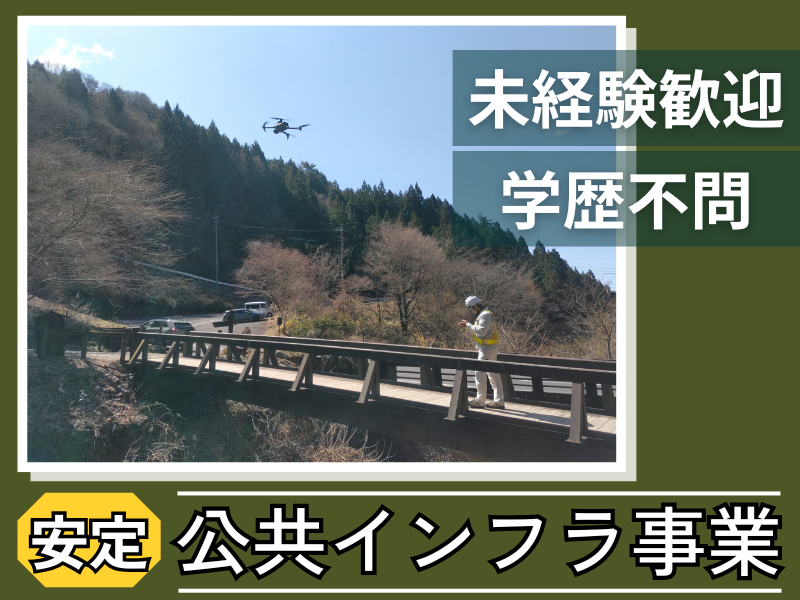 仕事内容 ✨ 公共インフラ事業で安定◎ ✨ \\ 受注量が年々増加中! // 将来を見据えた事業拡大のため、増員募集! ✅ 未経験歓迎!学歴不問! ✅ 他職種からの転職者多数活躍中! ✅ 20代30代若手活躍中! ✅ 山歩きや自然が好きな方にピッタリ! ✅ 出張時は温泉などを楽しむことも♫ ✅ 公共事業なので完全土日祝休み! ▲△▲△▲△▲△▲△▲△▲△▲△▲△▲ 【 仕事内容 】  ̄ ̄ ̄ ̄ ̄ ̄ ̄ ̄ ̄ ̄ ̄ ̄ ̄ 「インフラの点検・調査」と聞くと、 難しそうに感じるかもしれませんが、 実は道路や橋、川など、 みんなの生活を支える大事な設備を チェックするお仕事なんです。 現場ではドローンや3Dを使って データを集めたり、時には自然の中を 歩きながらチェックしたりするので、 ちょっとした探検気分も味わえますよ! 山や川で体を動かしつつ、 最先端技術も使える仕事。 自然の中での調査はまるでアウトドア! パソコン作業もありますが、 特別なスキルは必要なし。 Excelで写真を貼ったり、文字を打つだけの 簡単な作業から始められるので、 「パソコン苦手…」という人でも大丈夫です! 【 業務の流れ 】  ̄ ̄ ̄ ̄ ̄ ̄ ̄ ̄ ̄ ̄ ̄ ̄ ̄ ▶ 会社に出勤 ・過去の報告書を参考に、 調査する現場を下調べ ・カメラやメジャーなど必要な機材を 忘れないよう確認 ▶ 事務所から出発 ・先輩社員と一緒に社用車で現場へ移動 ドライブ気分も味わえます♪ ▶ 現地到着 ・車を降りた後、徒歩で現場へ ・山道を歩くことも多く、 自然の中での作業が中心です ▶ 調査作業 ・点検箇所のひび割れなどの確認・写真撮影・記録 ・1日で2~3現場を点検 ・仕事の合間に山菜を採ったり、 野鳥を撮影するスタッフもいます ・ドローンを飛ばしたり、写真を撮ったり、 高所に登ることもあり、自然のフィールド でダイナミックに働けますよ◎ ▶ 事務所に戻って整理 ・撮影した写真を整理し、報告書を作成 ・Excelのフォーマットに文字を入力し、 写真を貼り替えるだけなのでシンプル! カラオケ好きは鼻歌交じりに 作業していることも(笑) ✨【 この仕事の魅力 】  ̄ ̄ ̄ ̄ ̄ ̄ ̄ ̄ ̄ ̄ ̄ ̄ ̄ ̄ ̄ ̄ ̄ #自然やアウトドア好きが集まる職場 #出張先で観光や温泉を楽しめる #未経験からでも安心の研修体制 #チームで協力しながら取り組む達成感 地方出張の合間には温泉や観光も 楽しめます♫(下呂温泉など) 繁忙期には残業が発生することもあります。 その分、早くスキルが身につき、 責任あるポジションを目指せる環境です‼ 努力や成果はしっかり評価し、 リーダー・管理者候補としてのキャリアアップも可能です。 ▲△▲△▲△▲△▲△▲△▲△▲△▲△▲ ✨【 社長からのメッセージ 】  ̄ ̄ ̄ ̄ ̄ ̄ ̄ ̄ ̄ ̄ ̄ ̄ ̄ ̄ ̄ ̄ ̄ 当社は2021年9月に設立した会社で、 ドローンや3D技術を活用した成長中の 事業を展開しています。公共事業だから 安定して働けるのも大きなポイント。 景気に左右される心配はありません。 社員はアウトドア派からインドア派まで さまざまで、釣りや車、映画、カラオケなど 趣味を通じて仲間ができるかもしれません! 自然好きな人、ドローンを飛ばしてみたい人 趣味の話で盛り上がりたい人、みんな大歓迎! 若さを武器に「新しいことへ挑戦」を続け 地域社会に必要とされる唯一無二の 存在を目指して成長しています。 失敗を恐れず、チャレンジ精神を持って 一緒に未来の点検スタイルを作っていきましょう! ▲△▲△▲△▲△▲△▲△▲△▲△▲△▲
