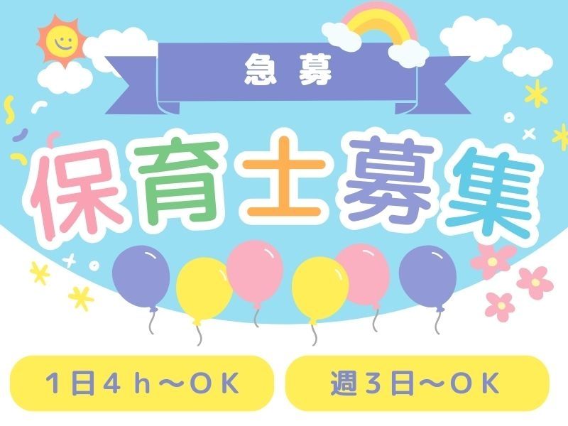 最寄り駅より徒歩10分!認可保育園の保育士/1日4h~OK/週3日~OK/経験不問◎<欠員1名募集>