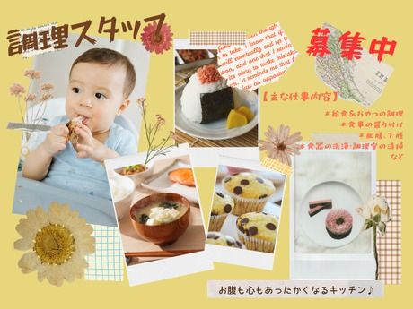 仕事内容 【仕事内容】 \子どもたちの「最初のおいしい」を、あなたの手で◎/ 家庭の味を園で活かせるお仕事♪ あなたの料理で園が笑顔に!残業なしで長く続けやすい調理パートです◎ 【教育理念】 その1 「何より子どもが最優先」 その2 「一人ひとりが主役」 その3 「地域の子育て支援」 【保育目標】 その1 「挨拶のできる子ども」 その2 「健康で心豊かな子ども」 その3 「何事にもチャレンジする子ども」 【クラス】 定員19名 ・0歳児定員6名/職員2名 ・1歳児定員7名/職員2名 ・2歳児定員6名/職員1名 上記以外にフリーの職員1名 ◎主な仕事内容◎ ・給食&おやつの調理 ・食事の盛り付け ・配膳、下膳、洗浄 ・食器の洗浄・調理室の清掃 など ご自宅での調理経験が少しでもあればOKです♪ *安心ポイント* ・ブランクがある方も丁寧にサポートします♪ ・経験が浅くても先輩保育士がしっかりフォローします♪ ・残業なし&持ち帰り仕事ゼロを徹底♪ 自社のHPもぜひご覧ください! コツヨシKids https://kotuyosi-kids.com/ 【アピールポイント】 ◎無理なく働けて、プライベートも大切にできます◎ シフトの相談も柔軟◎ご家庭の予定にも対応しやすい職場です♪ ◎ブランクがあっても大丈夫◎ 調理経験が浅い方でも、しっかり教えますので安心です♪ ◎あたたかいチームワークの中でお仕事◎ 保育士さんとも連携しながら、「子どもたちのため」に協力できる職場です♪ ◎お休みの取りやすさ◎ 有休取得率100%♪ シフトの相談もしやすく、お休み希望も通りやすい環境♪お子さんの急なお熱や学校行事なども柔軟に対応できます♪ 子どもたちの「おいしい♪」がやりがいになる! TikTokにて各園の雰囲気が覗けます♪ @kty_kidsにてチェック♪ 【勤務地の補足】 〒901-0225 沖縄県 豊見城市 豊崎 1丁目445