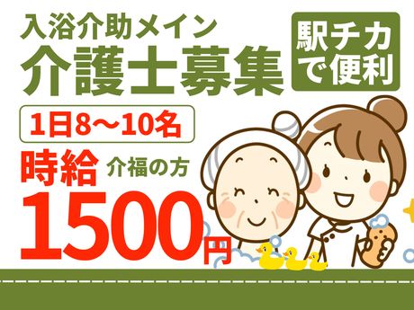 個浴での入浴介助がメイン♪高時給|勤務時間・日数相談OK|1日あたり8~10名|駅より徒歩2~3分