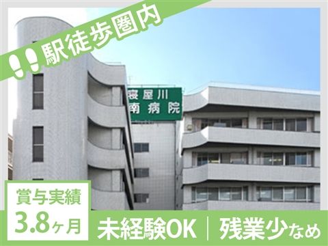 無資格・未経験も可能★賞与3.8ヶ月実績あり♪月収21万9000円~月収24万9250円可!時間外勤務ほぼなし!日勤は17:00終業★駅から徒歩圏内◆【寝屋川市、寝屋川市駅、病院/病棟、看護助手、正職員】