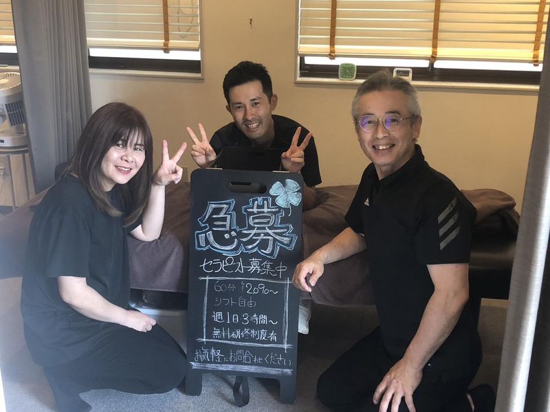 職場環境 キレイな店舗でベッド3台のリラクゼーションサロンになります。優しいスタッフ7名とオーナでお客様にサービスを提供しており、和気あいあいとした雰囲気で働くことができます。現在20代〜50代と幅広い年代が活躍中!
