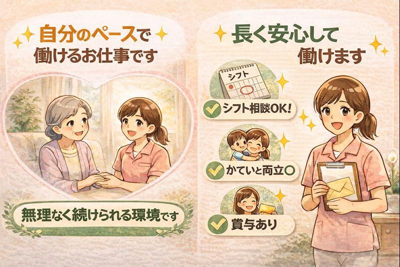 求めている人材 ◆介護職員初任者研修(旧ヘルパー2級)必須 ◆介護福祉士をお持ちの方は尚歓迎 ◆要普通自動車運転免許 ◆未経験OK ◆ブランクOK ◆お仕事復帰したい方歓迎 ◆主婦さんや子育て中の方も多数在籍! 日勤のみなので、夜勤はキツイという方にもおすすめ◎ ✨介護業界未経験OK✨ ◇他業界からのスタッフ活躍中! ◇前職が販売職やアパレル店員・飲食店員など様々な業種のスタッフが現在活躍中 ◇もちろん、介護スタッフとして働いたことのある方も大歓迎 ◇訪問介護やデイサービス・グループホームなど、介護職員の経験活かせます! 経験者や、資格はあるけど就業経験がない方も大歓迎です♪