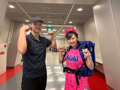 仕事内容 【想い出に残るバイトしませんか!】 軽い筋トレよりも効果的!? +:. 運動好きにピッタリなお仕事! .:+ *・ー・* 2026年度 京セラドーム \ 売り子の販売サポートスタッフ 大募集!/ *・ー・* ■ 週2日~、1日3H~の短時間OK♪ ■ 非日常で一生モノの想い出を♪ ■ 未経験からでも安心スタート! ■ 毎年恒例の人気バイト! 《 具体的な仕事内容 》 ビール樽を背負って球場をまわる 売り子さんをあなたがサポート! 「もうすぐ100杯!」 「あと1杯で自己ベスト更新!」等、 空になったビール樽を交換しながら 売り子さんを激励! ビール樽ホルダーのチャックを空け、 10kgのビール樽を 手早く装填して送り出しましょう! 【未経験OK!志望動機は何でもOK!】 「イベントが大好き」「野球が好き」 「家が近い」「友達を作りたい」 「スキマ時間で働きたい」 「ワイワイしながら働きたい」など、 みんなの志望動機はさまざま! 事前に研修があり、不安なことを 払拭してから現場に入れますよ◎ みんなで一緒にスタートするので、 安心して働き始められる環境です! 【シフトは週2日×1日3h~OK】 ●授業が終わってから …平日16~22時 ●学校が休みの日に …土日9時~17時 ●テスト期間中は少なめで …週3日程度で17~21時 など、様々な働き方が可能! 試合やイベントなどの 年間スケジュールが発表されているので 入りたい日程があれば希望も出せますよ! 「平日のみ」「土日のみ」など 相談はお気軽に! 【たくさんの新しい出会いが待っています!】 京セラドーム大阪で 働くスタッフは総勢500名弱。 初めてのスタッフも多く、 みんな一緒にスタートするので、 同期もたくさんいて安心! 働き方も融通が利くので、 高校生、学生さん、 主婦パートさん、フリーターさんなど、 幅広い年代の方が働いています!