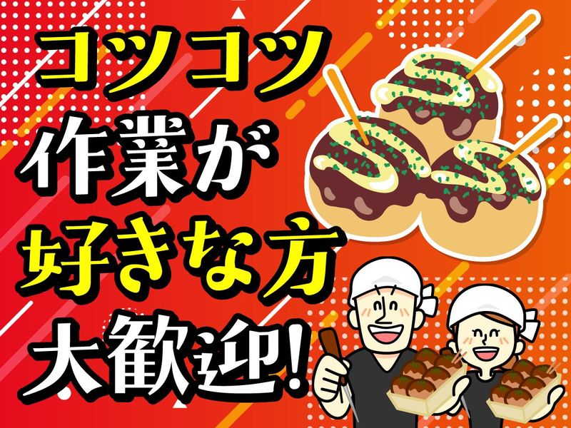 仕事内容 \駅チカ・路面店の新着求人!/ \未経験歓迎!髪色・ネイル自由★/ \週2日~、1日2時間~OK!/ 駅チカで活気あふれる路面店にて、 自慢の「たこ焼き」「お好み焼き」「焼きそば」 などの調理・販売をお願いします! ✅ 調理・販売 ・食材の盛り付け、具材を炒める、洗い物など。 ・「たこ焼き・お好み焼き・焼きそば」 が全部作れるようになれば一人前! ・配達業務はありません! 店頭での調理と販売に集中できます。 ✅ 接客 ・オーダー取り、レジ、商品の受け渡し 電話対応など。 ・お客様との元気なやり取りが、 お店の活気につながります! \大手ならではの安心感×丁寧な指導/ まずは調理からマスター! マンツーマンで「丁寧に」教えるので、 未経験でもご安心ください◎ \シフトの自由度が自慢!/ ・週2日~、1日2時間~OK! ・ 2週間ごとにシフトを作成。 予定が立てやすく、希望休の取得率は99.9%! ・Wワーク・副業も歓迎! 扶養内勤務も、ガッツリ勤務もどちらも大歓迎です。 \嬉しいメリット&待遇/ ・最強のまかない: 自慢のレギュラー商品が全品無料! ・昇給アリ: 能力に応じて1ヶ月単位で昇給! 過去には計250円アップした先輩も◎ ・夏場のご褒美: 暑い夏にはドリンク1本の差し入れあり! ・身だしなみ: 髪型・髪色自由(バンダナに収まればOK)、 ネイルも作業用手袋をするのでOK! ・通勤: 交通費全額支給。自転車・バイク(原付・小型)OK。 車通勤は近隣パーキング代を支給します。