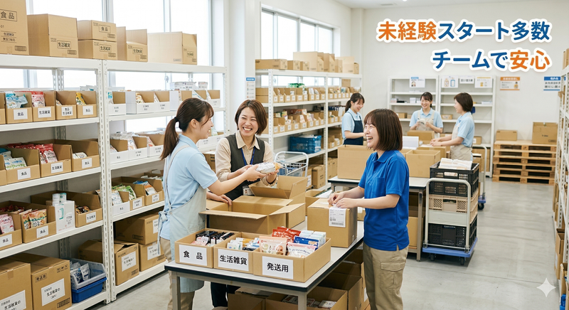 求める人材: ・未経験歓迎 ・学歴不問 ・資格不要 コツコツ作業が得意な方、体を動かす仕事が好きな方歓迎します。 チームで協力しながら仕事ができる方を募集しています。 倉庫作業(ピッキング・梱包・出荷作業など)の経験がある方は歓迎しますが、未経験の方でも問題ありません。 仕事は一つずつ丁寧に教えますので安心してご応募ください。