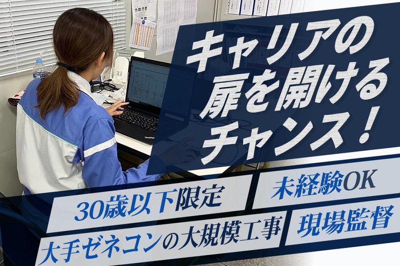 【アピールポイント】 大手ゼネコン案件の現場監督を正社員募集! 【未経験OK・eラーニング研修あり】 【土日祝休み・直行直帰OK】 【創業100年超・安定企業】 腰を据えてキャリアを築ける環境です☆ ※限定※30歳以下の方(例外事由3号のイ)